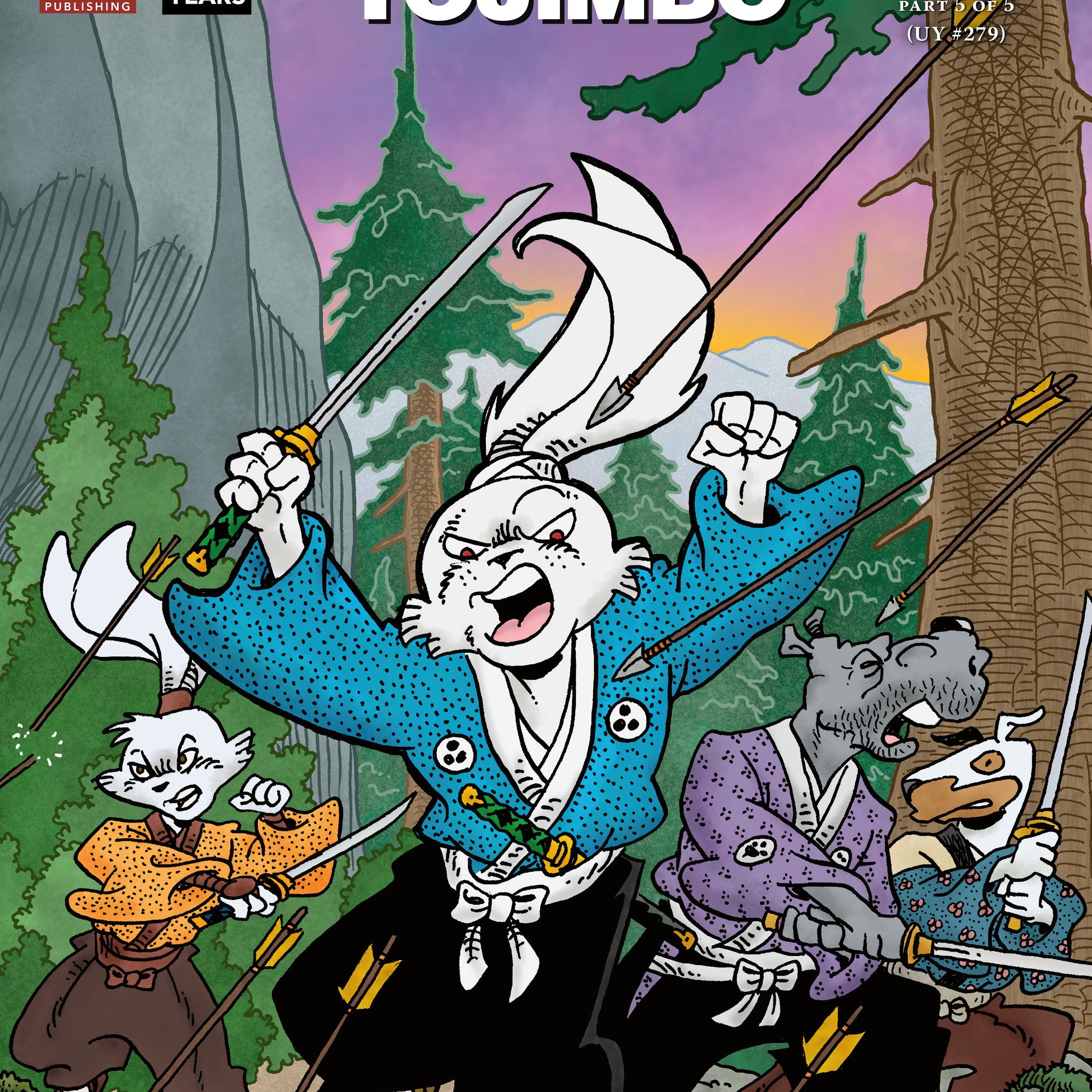 The conclusion of “The Crow” story arc features an all-out battle between the bounty hunters and the bandits! Though greatly outnumbered, Usagi and the bounty hunters are confident they can even the odds by taking the criminals by surprise. Their plans go awry, however, and the bandit chief, Jimmu, abandons his men to make his escape. One goes after him, but they're surprised by an unexpected attack! • Return of longtime Usagi fan-favorites Gen and Stray Dog! • Series finale!
